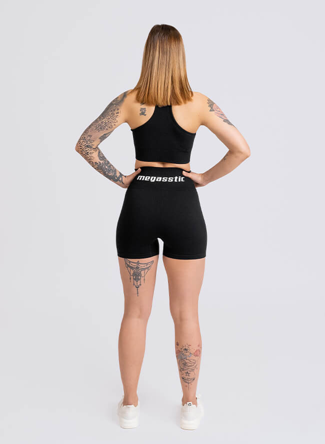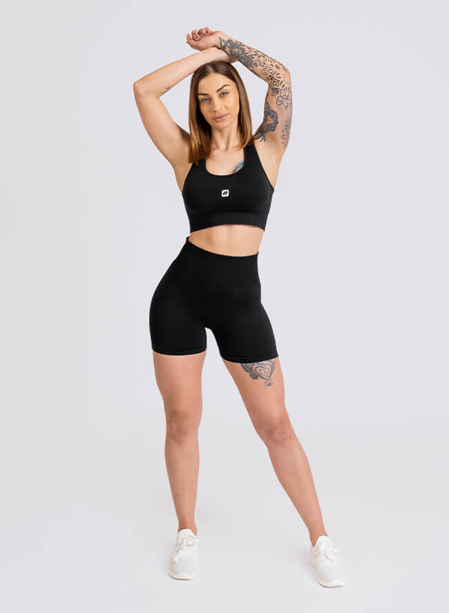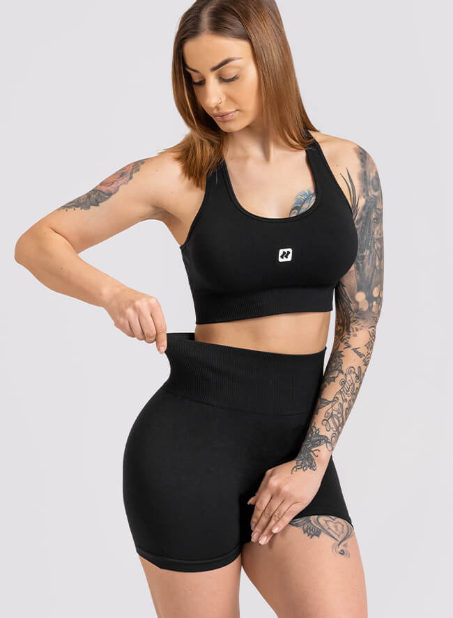 Il reggiseno e i pantaloncini sportivi, molto resistenti, elastici e traspiranti, sono disegnati per garantire il massimo comfort anche durante gli allenamenti in palestra più intensi.
