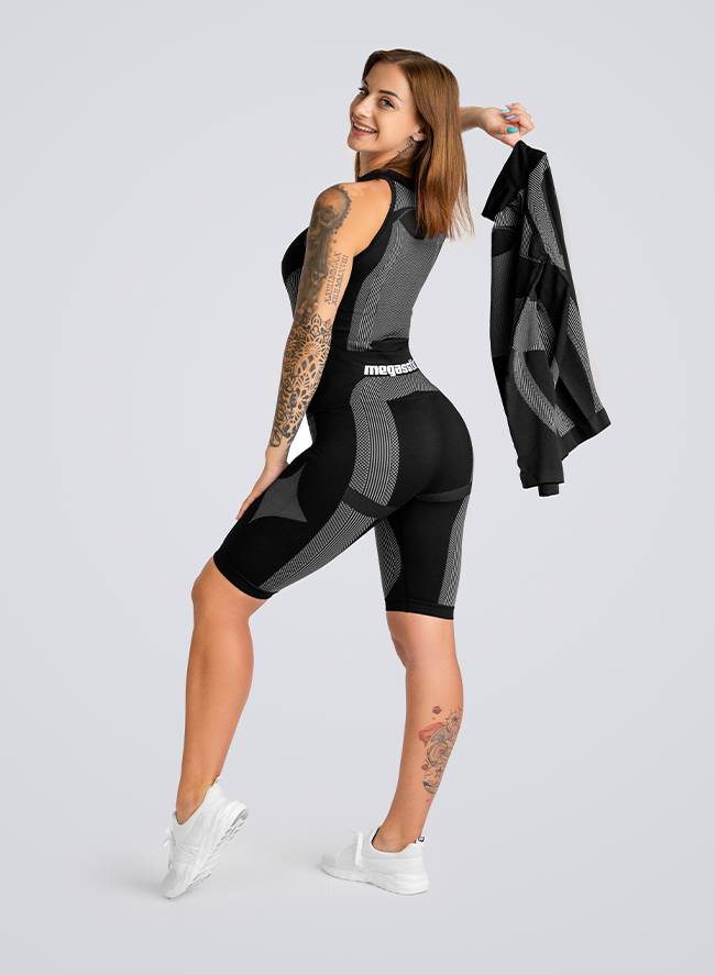 • Il completo include leggings, pantaloncini in stile ciclista, top e una maglietta